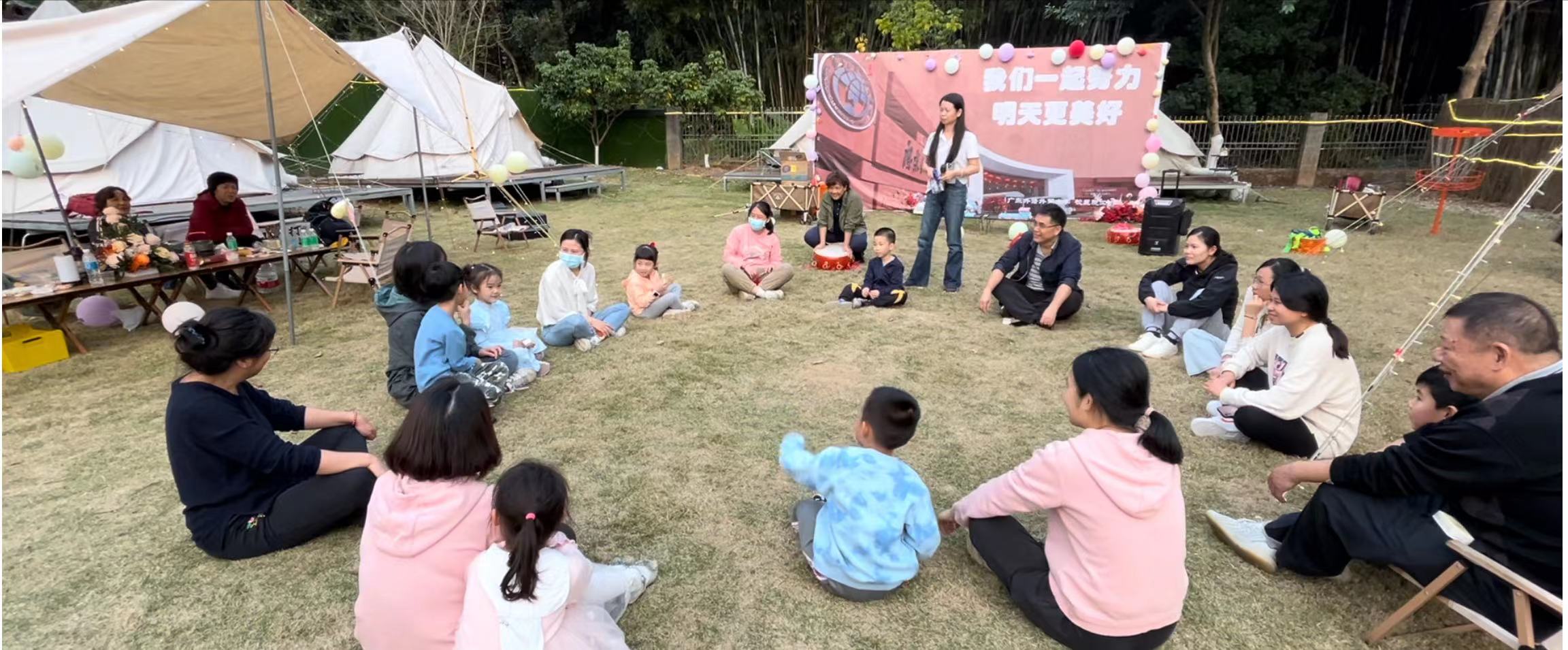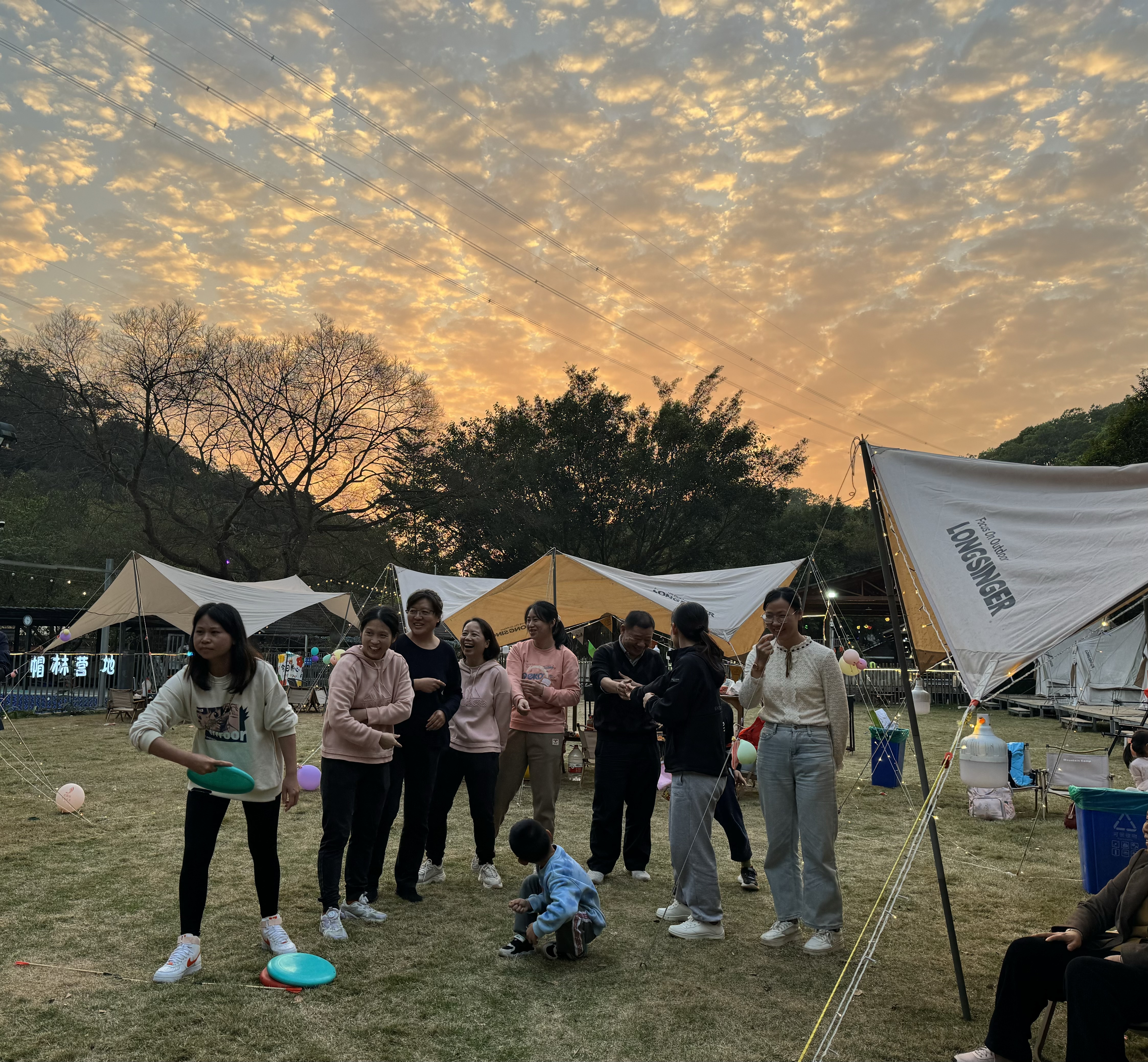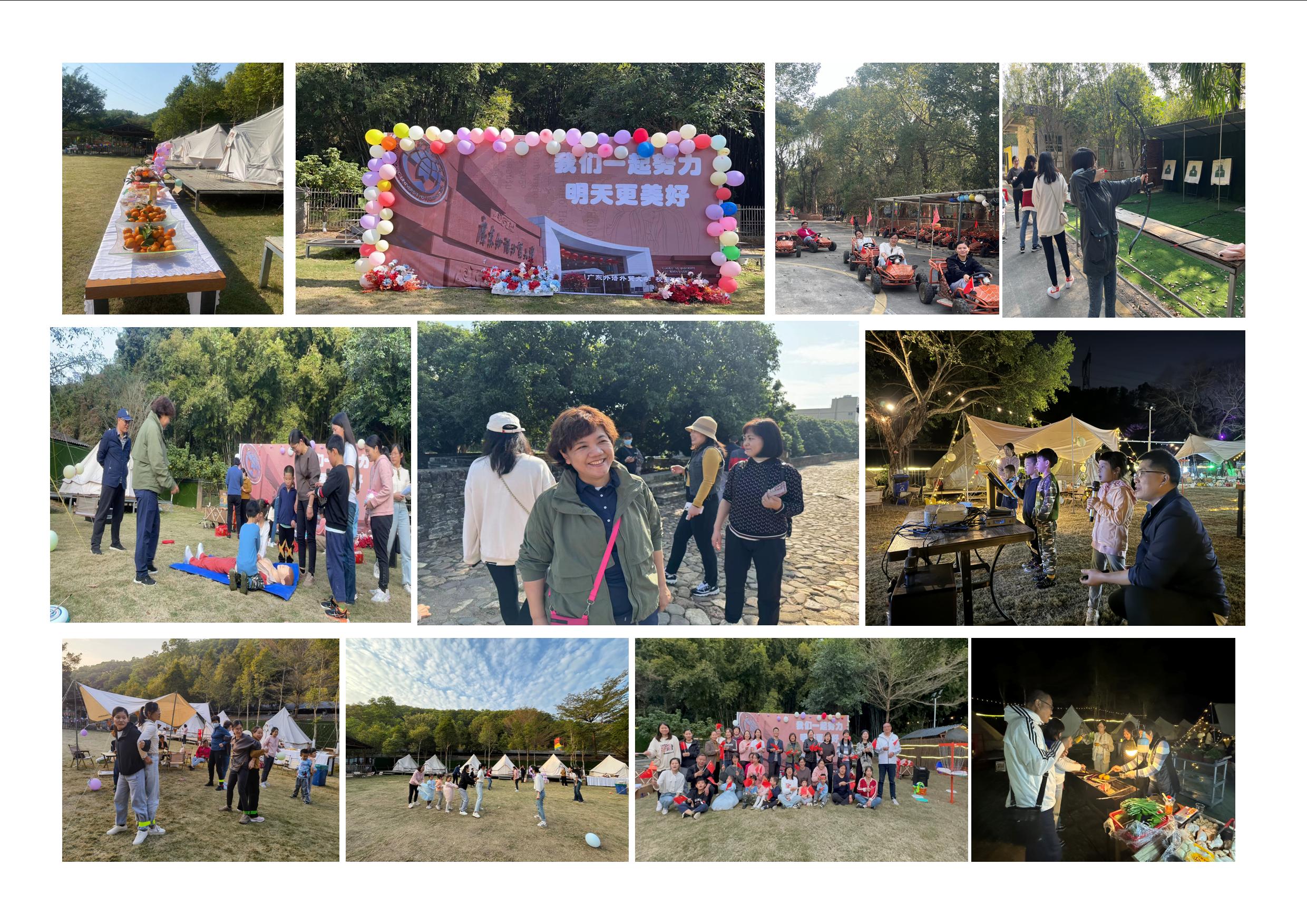结束钱岗古村的游览后,大家驱车来到了帽峰营地。营地活动的前半场为自由活动,大家或打牌、射箭、玩卡丁车,或围炉煮茶静静休息畅聊,紧张忙碌了整一学期的辛苦迅速切换到此刻的悠闲放松之态。营地活动的下半场为集体活动,校医院工会结合业务工作创新性精心组织了一系列丰富多彩的比赛和游戏活动,如心肺复苏接力赛、二人三足背靠背顶球、击鼓传花答非所问、儿时游戏老鹰抓小鸡、飞盘投篮等。大家在一个接一个的游戏活动现场中欢声笑语,高潮迭起、气氛甚是热烈。