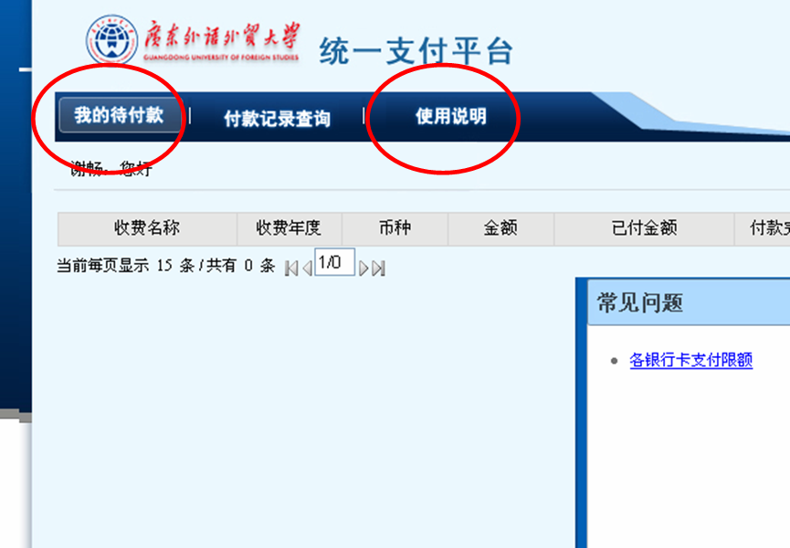 1.从广外门户网站登入,点击进入“支付平台系统”