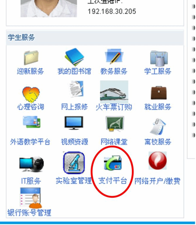 1.从广外门户网站登入,点击进入“支付平台系统”