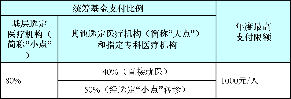 家庭病床按一级定点医疗机构住院的支付比例,其余门诊特定项目的统筹基金支付比例与对应级别的住院支付比例一致。