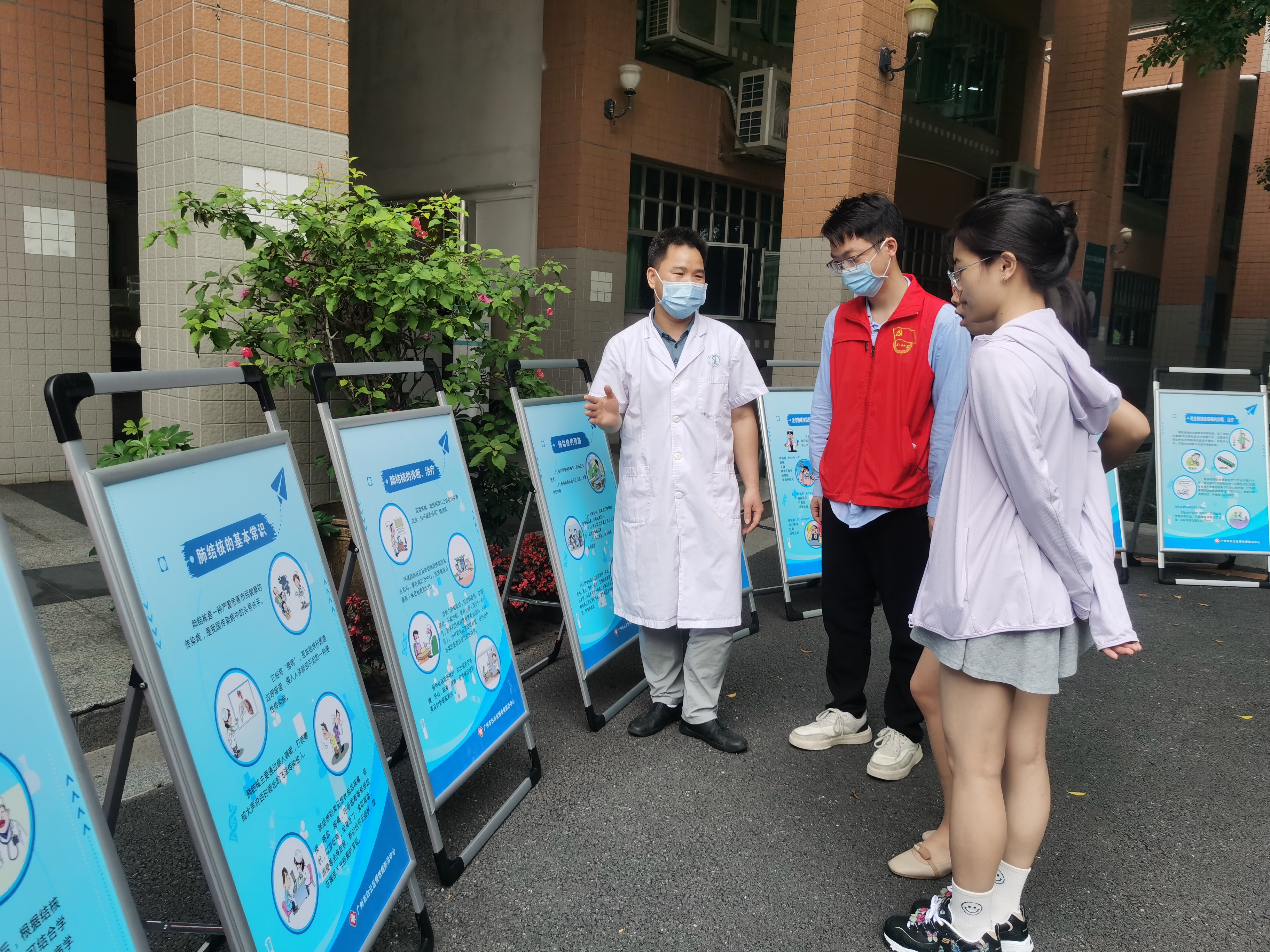 结核病是一种经呼吸道传播的慢性传染病,在全球广泛流行,严重危害着广大人民群众的身体健康,已成为重大的公共卫生问题和社会问题。为加强学校结核病防控工作,提高师生对结核病的认知水平,增强自我防护意识,共建健康校园,在第28个世界防治结核病日宣传月活动中,校医院与白云区慢性病防治中心、黄石街社区卫生服务中心于4月13日下午在我校白云山校区共同组织举办了“健康教育进校园-结核病健教宣传活动”。活动以知识讲座、健康咨询以及趣味游戏的形式开展。