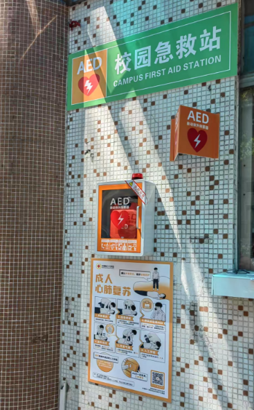 3月10日下午,白云山校区迎来了一场特殊的“生命课堂”。校医院联合广州市慈善会、广东省蓝态幸福文化公益基金会,向学校捐赠了一批自动体外除颤仪(AED),并同步开展急救公益培训。50余名师生齐聚现场,学习AED操作与心肺复苏(CPR)技能。校医院杨院长在致辞中表示:"AED是抢救心脏骤停患者的‘救命神器’,这批急救物资将有效充实校园应急储备,为师生生命安全增添保障。